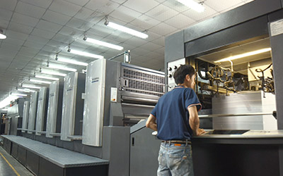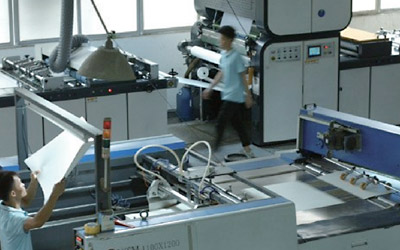 佳匯擁有全自動化的工藝設(shè)備包含全自動覆膜、UV、裱坑、啤燙、粘盒、騎釘、膠裝等